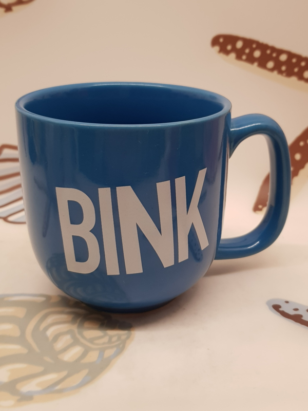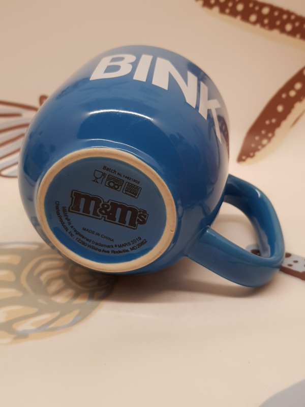 Leuke grote mok van M&M met BINK erop in de kleur rood, in mooie staat, doornsee en hoogte 10cm.