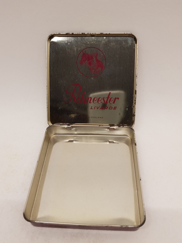 Schöne alte Zigarrendose in gutem Zustand, Scharniere funktionieren, obere Kanten sind altersbedingt angelaufen, Innenseite in gutem Zustand, 10x10cm.