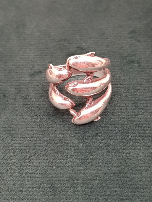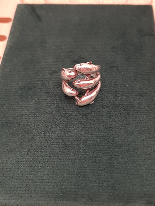 Schöner Kinderring aus Silber 925, Ringgröße 16 mit Delfinen, Höhe 2,2 cm.