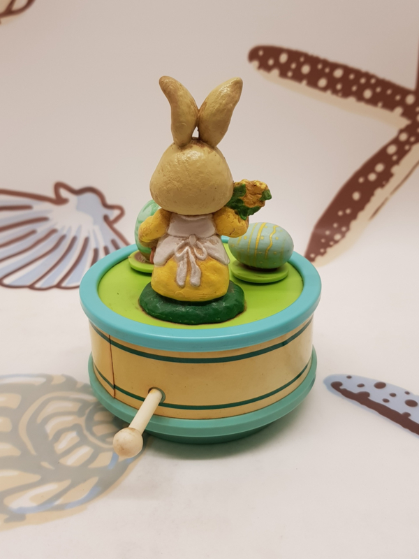 Niedliche Spieluhr - Spieluhr mit einem Hasen, der sich zur Musik dreht, drückt man den Stift, stoppt die Musik, muss noch etwas gereinigt werden, ø9, H12cm.
