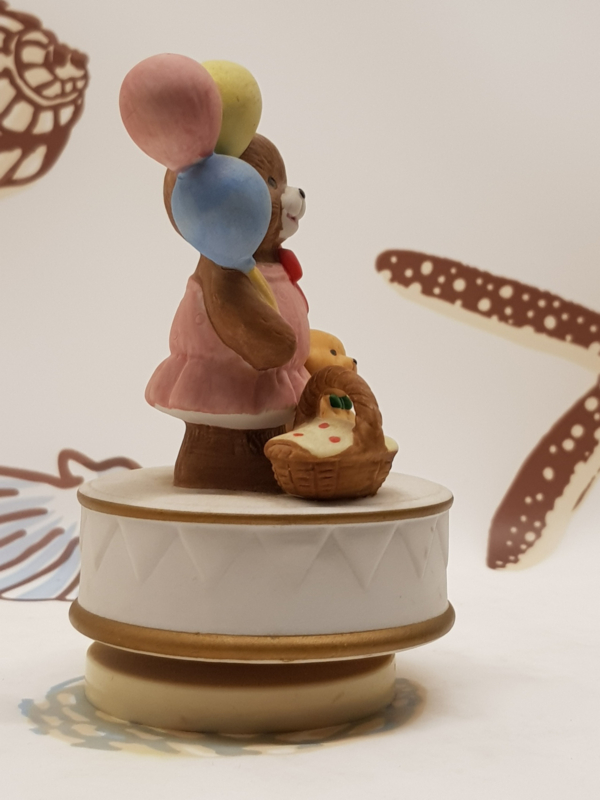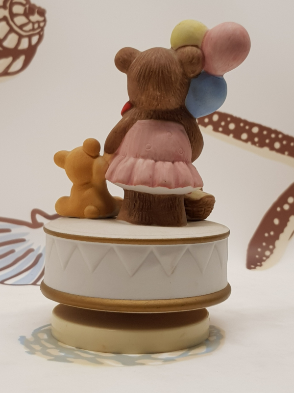 Hübsche, antike Spieldose aus Biskuitporzellan, sie dreht sich beim Ertönen der Musik, 14,5 cm hoch, könnte eine Reinigung vertragen.