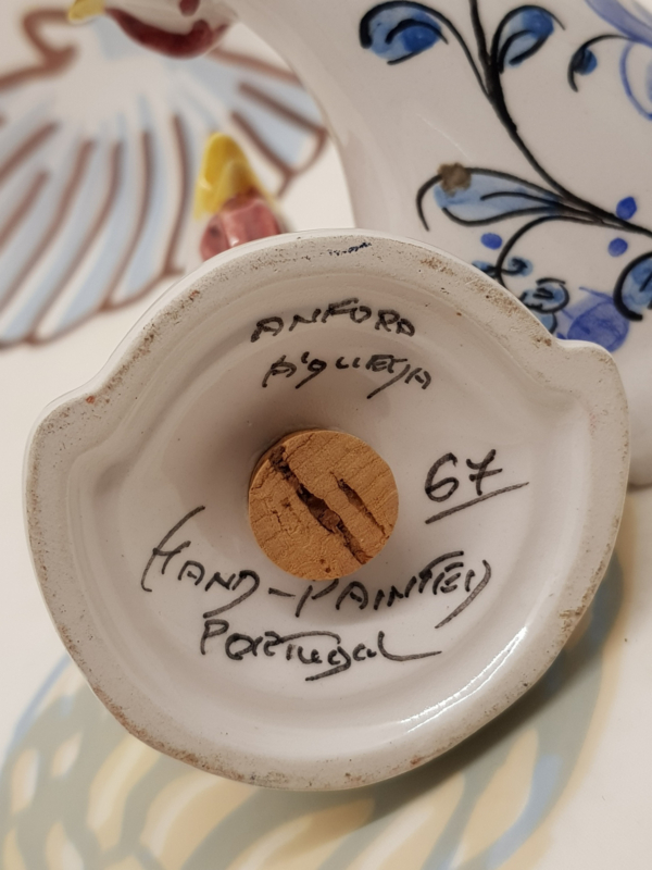 Huhn und Hahn als Salz- und Pfefferstreuer aus Portugal, Anfora 1967, 10 cm hoch.