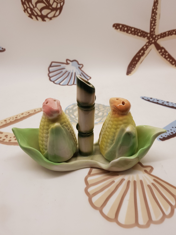 Salz- und Pfeffermaiskolben auf einem Bambusboot