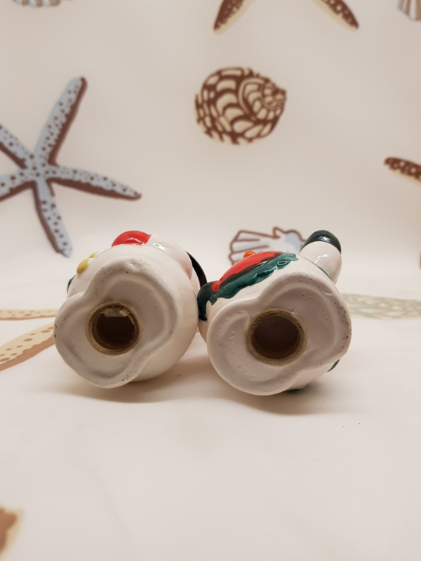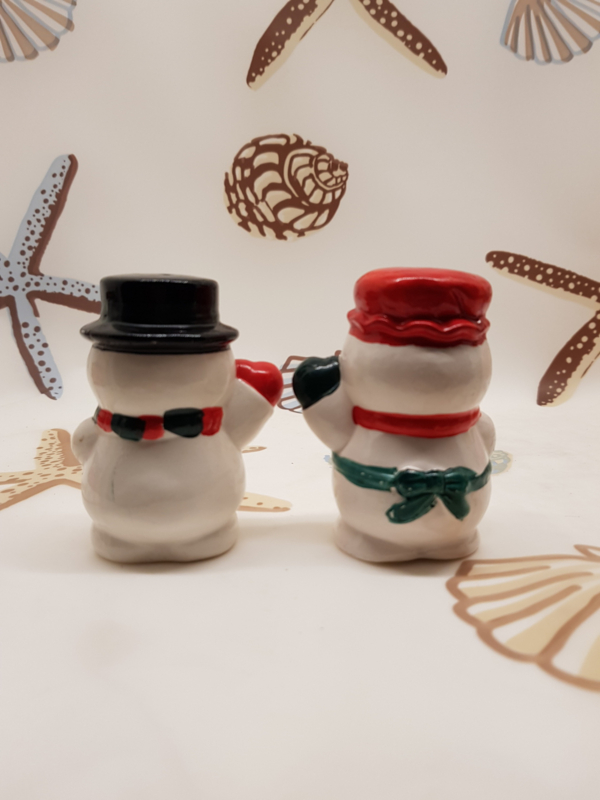 Niedliche Keramik-Schneemänner als Salz- und Pfefferstreuer, 9 m hoch.