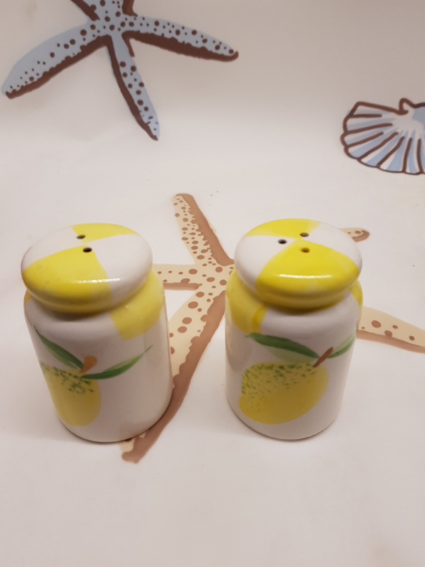 Schönes Vintage-Pfeffer- und Salzset mit Zitronen, 7,5 cm hoch.