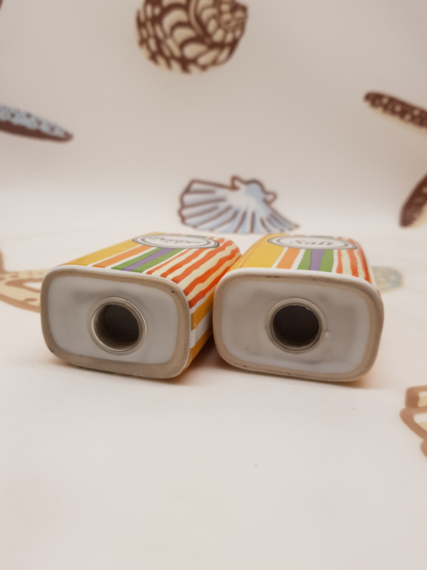 Salz- und Pfefferstreuer aus Porzellan aus den 1970er Jahren, 7,5 x 4,5 x 3 cm.