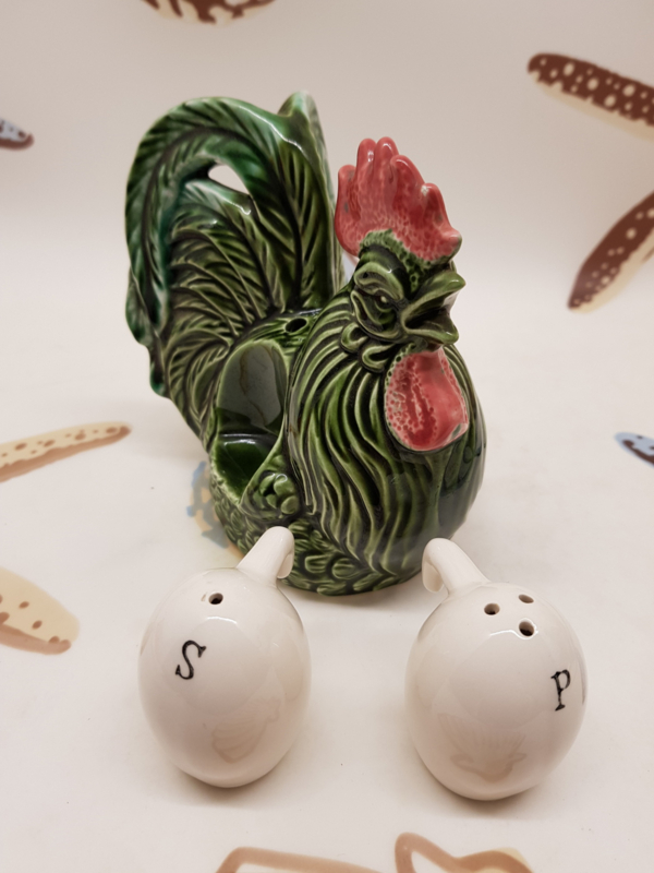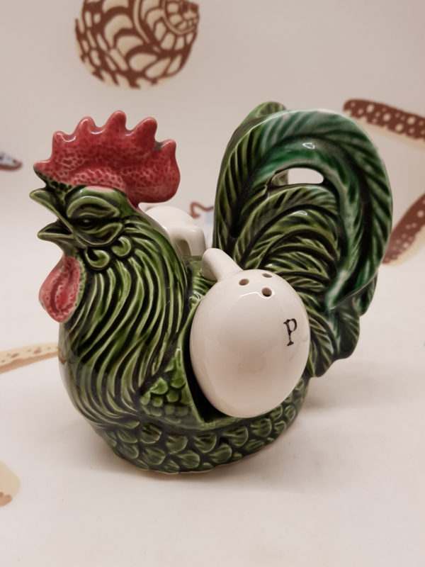 Großes Huhn mit Eiern als Salz- und Pfefferstreuer