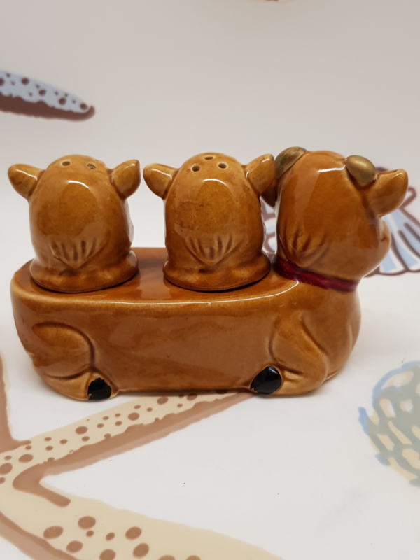 Kuh mit Kalb im Boot, Salz- und Pfefferstreuer