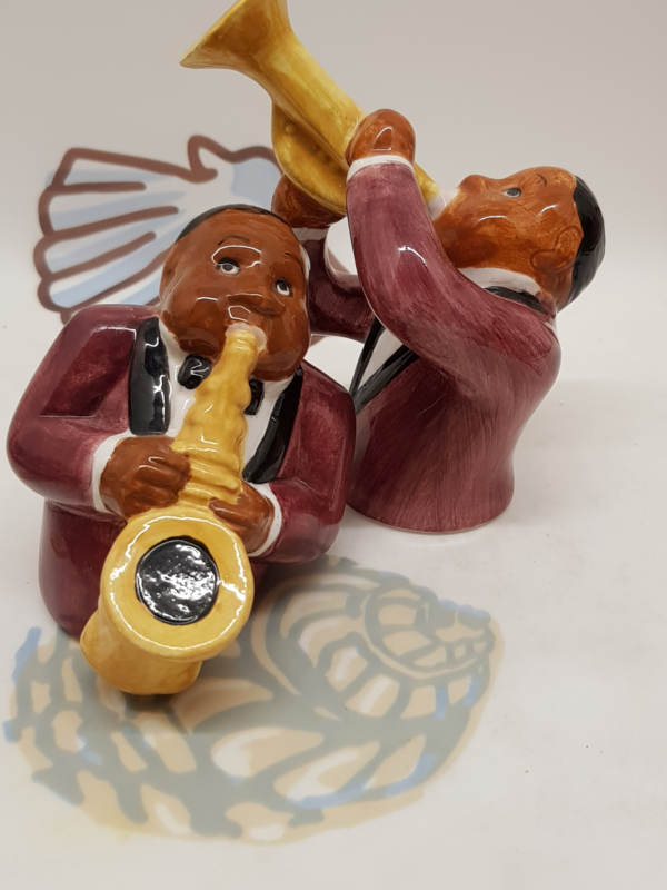 Wunderschöne Musikerfiguren als Pfeffer und Salz, die höchste ist 12 cm groß.