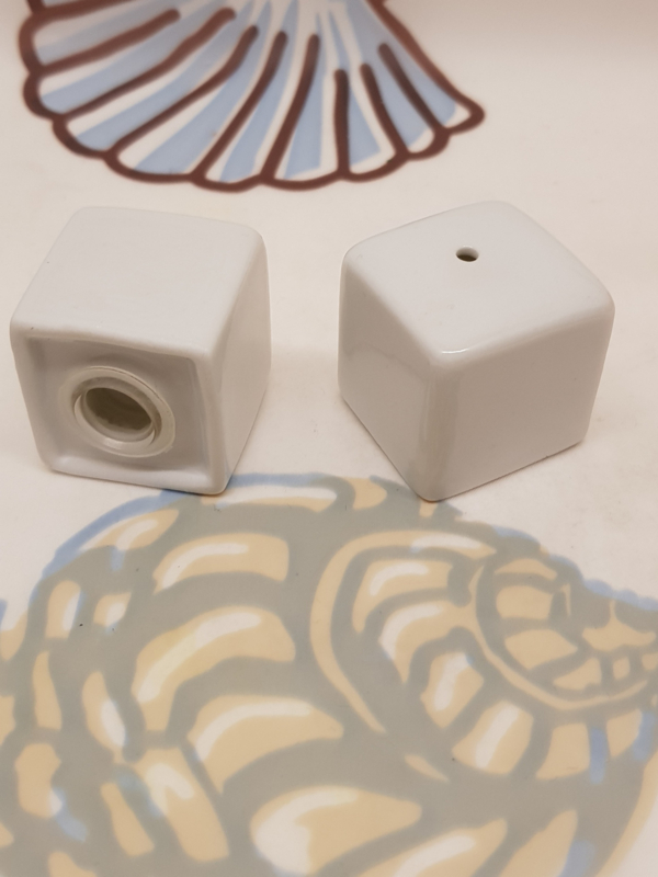 Quadratische Salz- und Pfefferstreuer, 3 cm hoch.