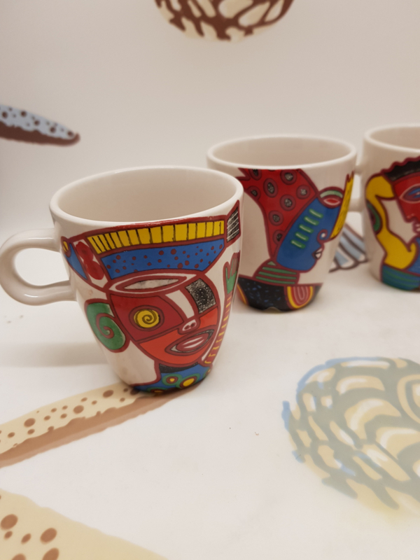 4 wunderschöne Mosa-Becher von Douwe Egberts, entworfen von Clemens Briels nach einem Entwurf von Nikolai Carels, aus Mosa-Porzellan.
