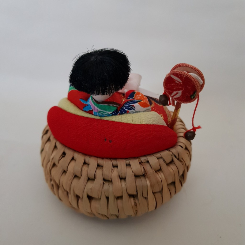 Brocante Nadelkissen aus den 70er Jahren, japanisch, der Kopf ist aus Stein, wurde nie benutzt, durchschnittlicher Korb 8 cm, Höhe 8 cm