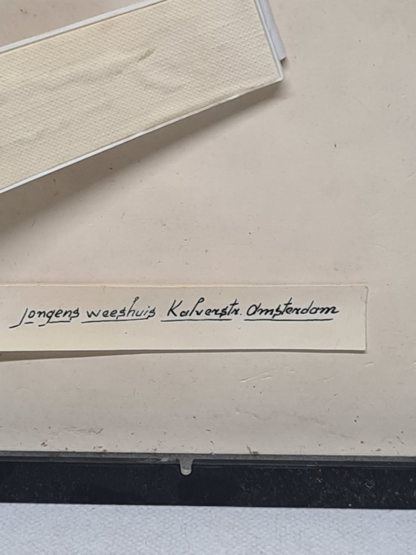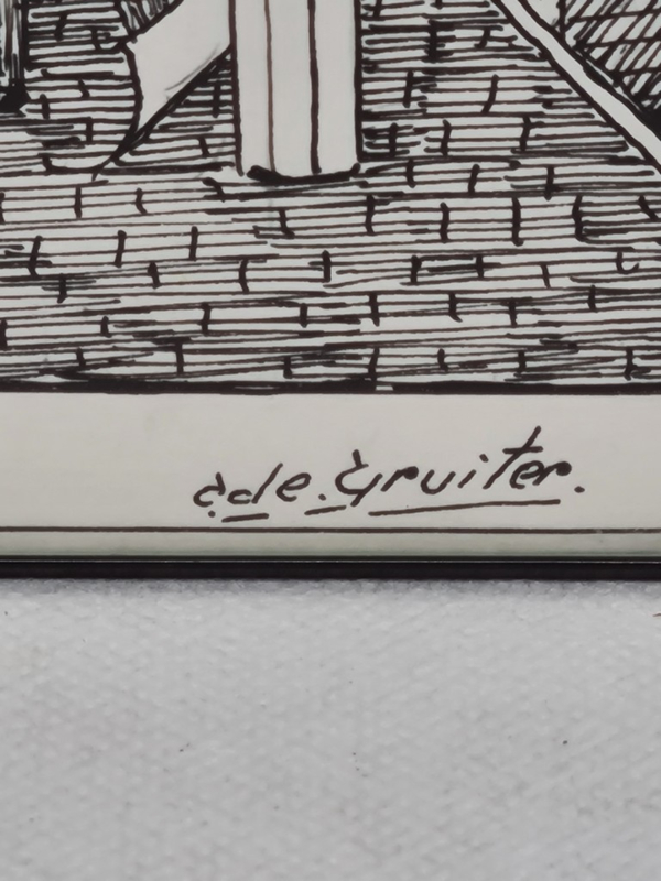 Eine schöne Originalzeichnung von C.de Gruiter, einem Jungenwaisenhaus Kalverstraat in Amsterdam, 20x24, Kunststoff mit mattem Kunststoffglas vorne, 20x24cm, sonst unbekannt.