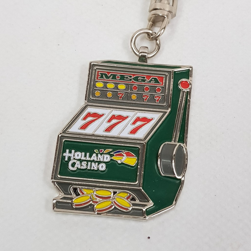 Wunderschöner Schlüsselbund vom Holland Casino mit einem schönen Spielautomaten, insgesamt 9 cm.
