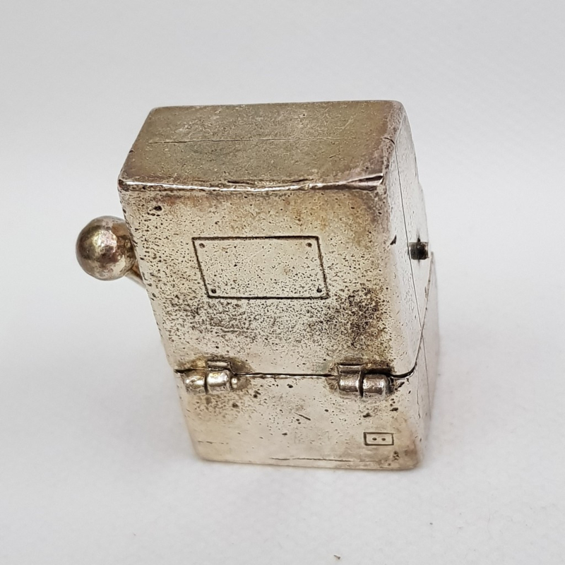 Schöne Metallschmuckbox, Casino sieht aus wie Chrom über Kupfer, 4,5x3,5x2,5 cm.