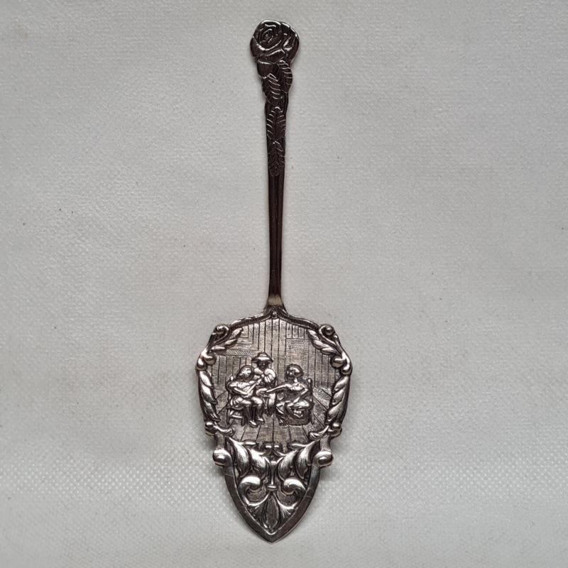 Old Dutch Cake Server - nicht Silber, sondern Speculum Plate, mit Box (nicht mehr schön), 1970er Jahre, 17 cm.