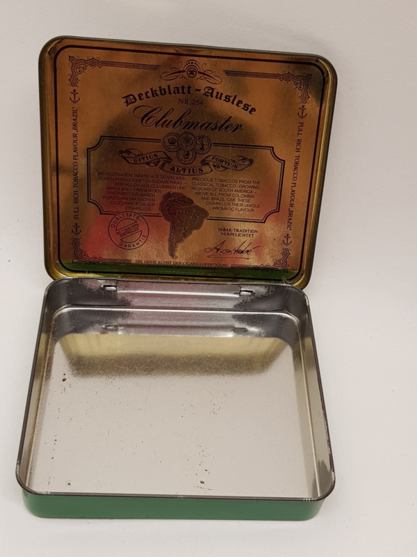Schöne alte Vintage-Zigarrendose von Clubmaster Superior Nr. 254, in ordentlichem Zustand, 11x10x2cm.