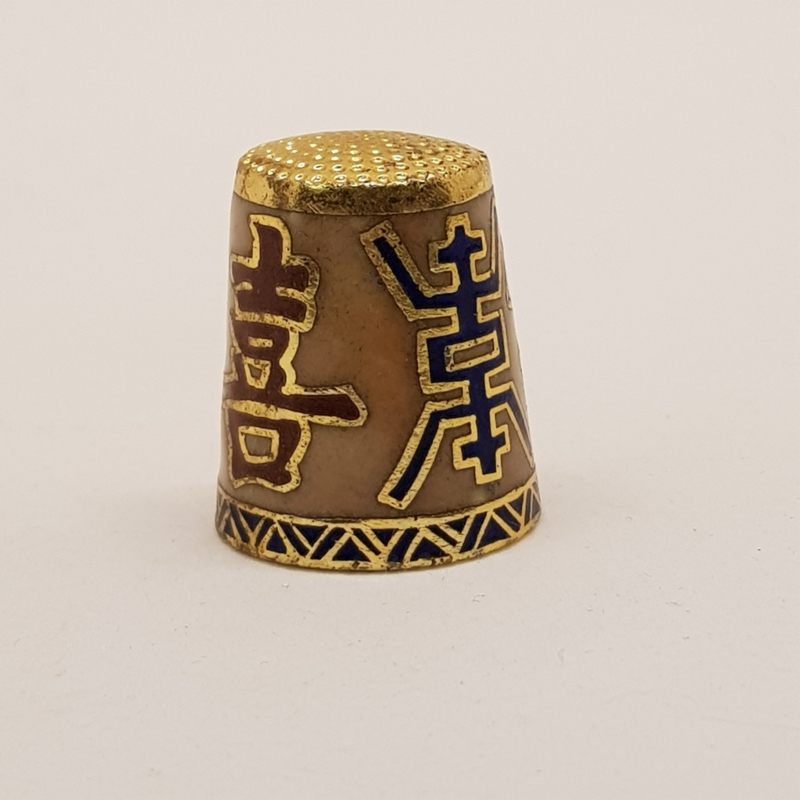 Wunderschöner antiker Fingerhut aus orientalischem Messing mit Emaille.