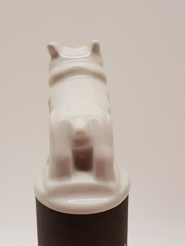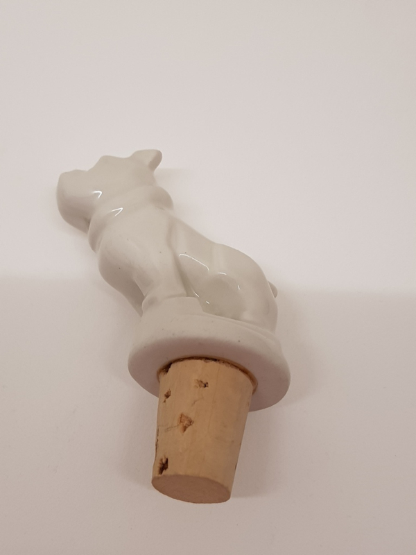 Sehr selten, ein Porzellan-Flaschenverschluss in Form einer Mack Bulldogge, unbenutzt, gemessen 7x8cm ø4cm ohne Korken.