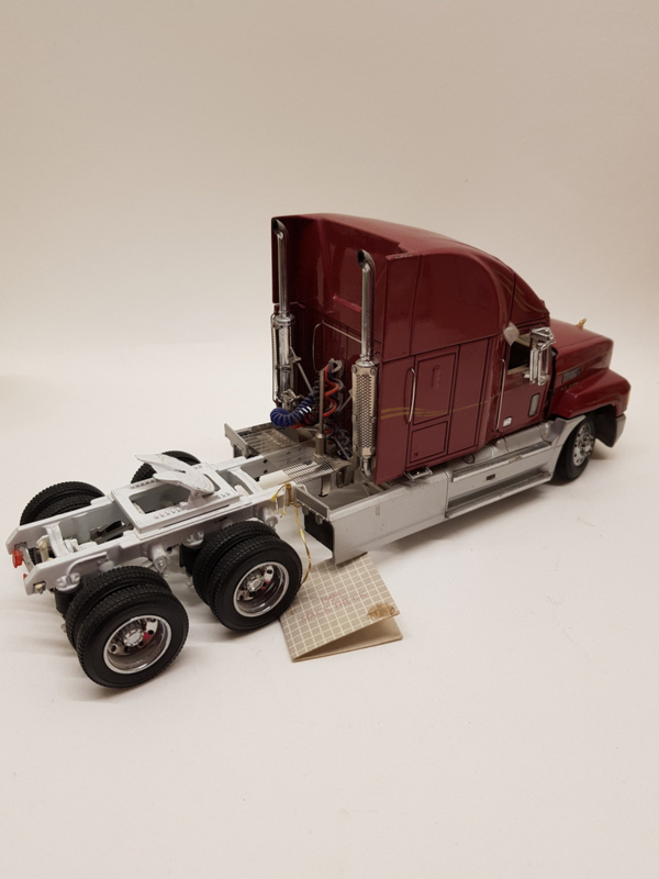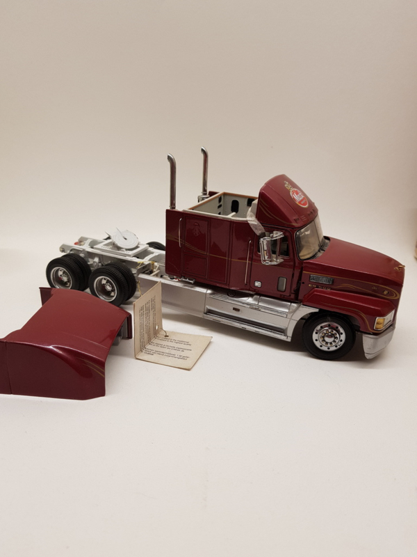 Schöner großer Mack Truck 1:32 von Franklin Mint, stand immer zur Dekoration in der Vitrine, einige Schutzteile sind noch vorhanden, leider sind die Spiegel und Scheibenwischer durch Verstauben verschwunden.