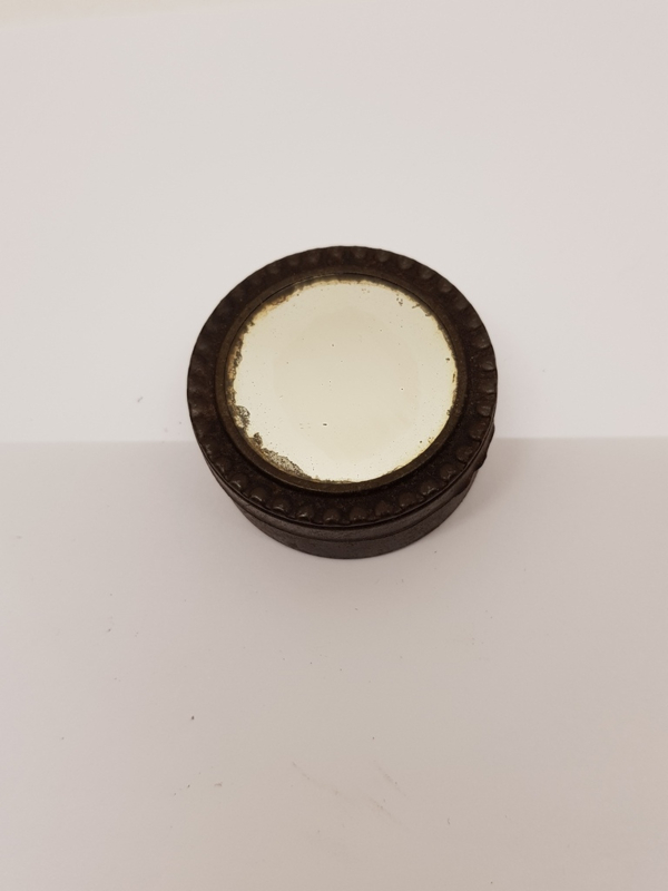 Schöne antike Pillendose aus Zinn mit Spiegel oben, ø4,5, H2cm.