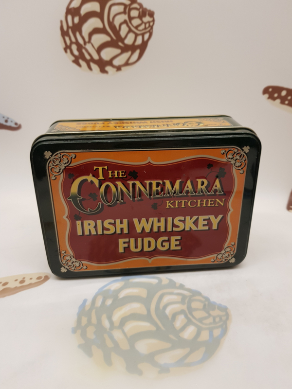 Connemara Kitchen FudgeEine 15 Jahre alte Dose The Conneman Kitchen Irish Whiskey Fudge, natürlich leer, 14,5 x 10 x 6 cm hoch.