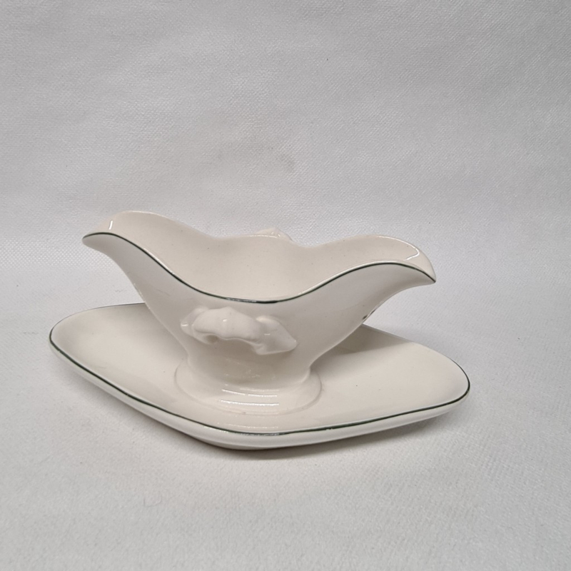 Sauciere Petrus Regout Dekor Greta M4Dieses schöne übrig gebliebene Sauciere von Petrus Regout & Co. wird aus einem Kinderservice hergestellt.Maastricht, Dekor greta M4, 19x11x8H.