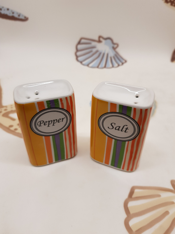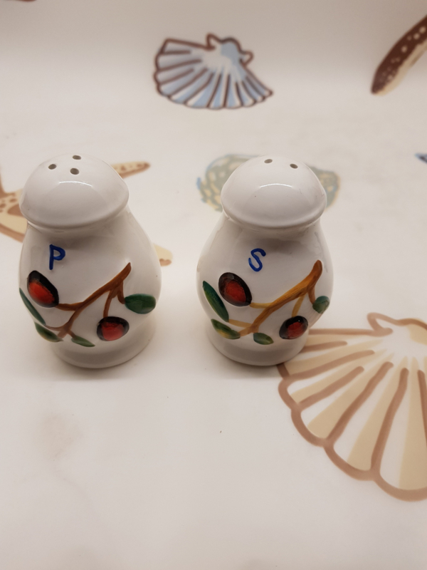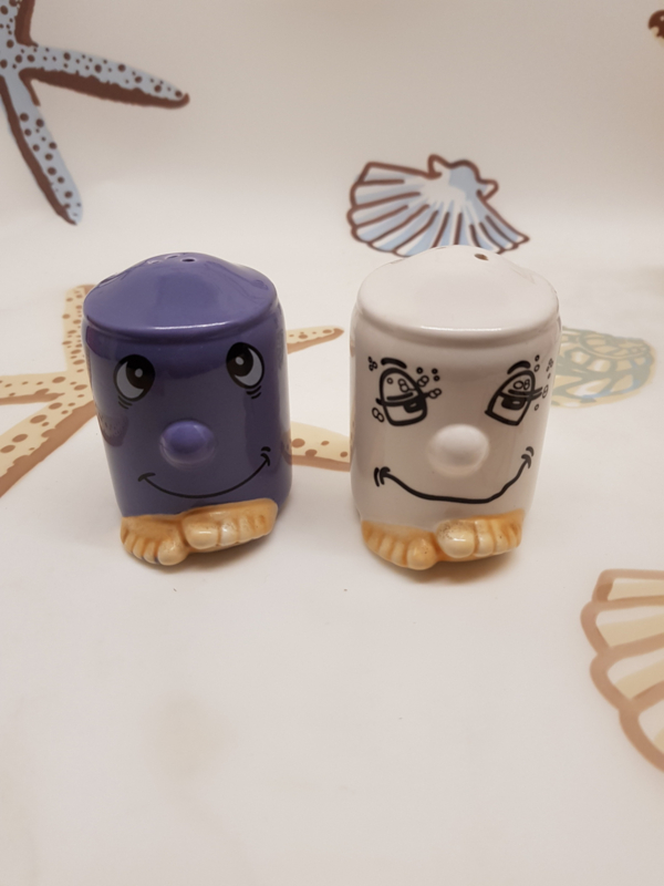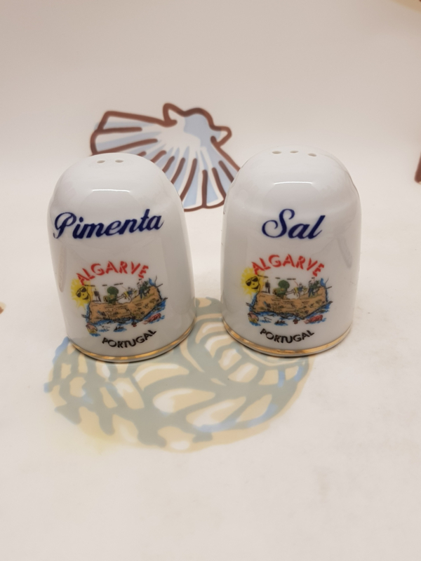 Salz- und Pfefferstreuer aus der Algarve, PortugalSchöne Salz- und Pfefferstreuer aus Porzellan, die ich als Souvenir aus Portugal mitgebracht habe, ø5cm H7cm.