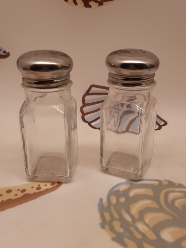 Standard-Salz- und Pfefferstreuer aus GlasWunderschöne Salz- und Pfefferstreuer aus Glas mit Edelstahldeckel, H 10 cm