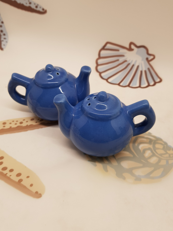 Teekannen als Salz- und PfefferstreuerNiedliche blaue Teekannen als Salz- und Pfefferstreuer, 7 cm hoch.