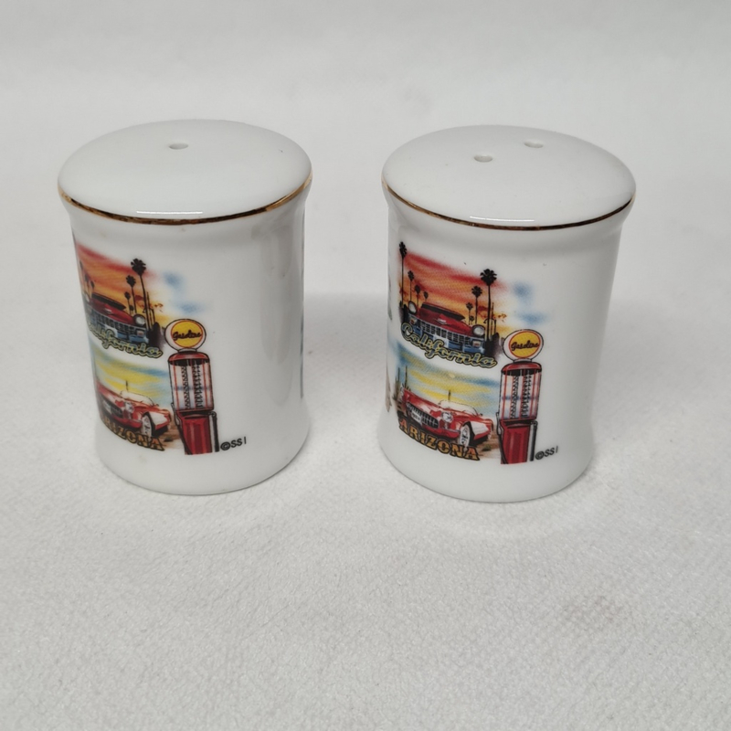 Pfeffer- und Salzstreuer aus AmerikaSchöner Porzellan-Pfeffer-Salz-Shaker mit Bildern von Orten in Amerika, 6,5 cm hoch.