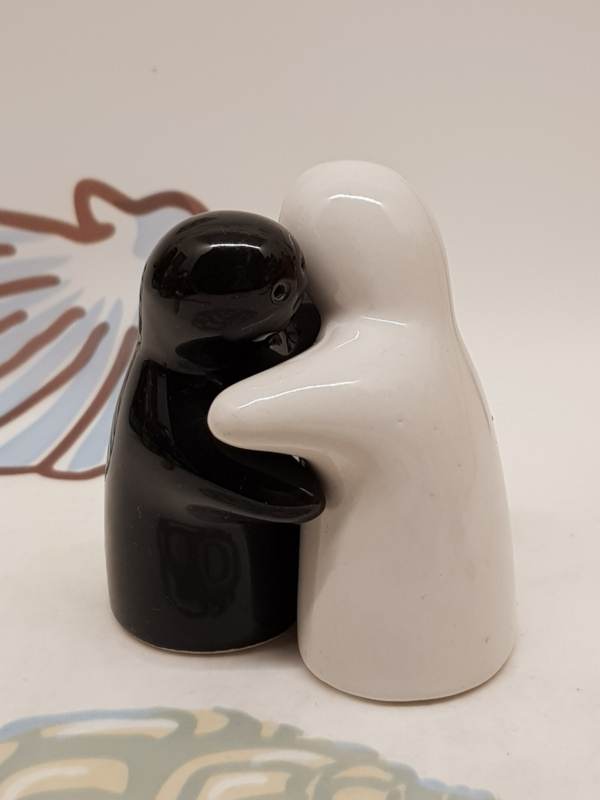 Salz und Pfeffer – zwei KünstlerDie kunstvoll aus Porzellan gefertigten Männchen dienen als Salz- und Pfefferstreuer und sind durch Magnete miteinander verbunden.