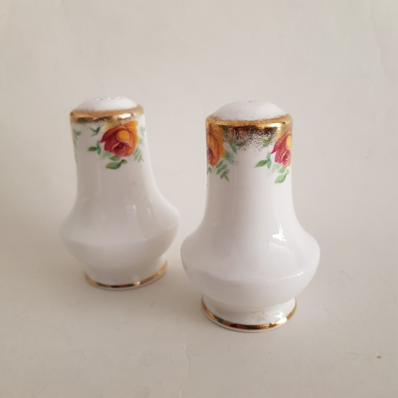 Royal Crawford Pfeffer und SalzPorzellan Pfeffer und Salz von Royal Crawford, 1 fehlt 1 Kappe