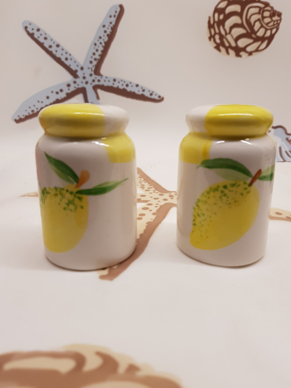Salz- und Pfefferstreuer mit ZitronenSchönes Vintage-Pfeffer- und Salzset mit Zitronen, 7,5 cm hoch.
