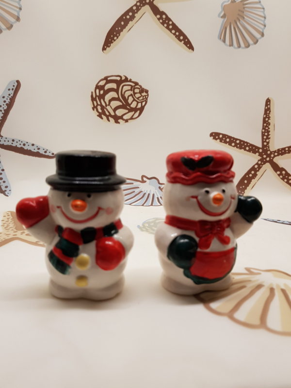 Salz- und Pfeffer-SchneemännerNiedliche Keramik-Schneemänner als Salz- und Pfefferstreuer, 9 m hoch.