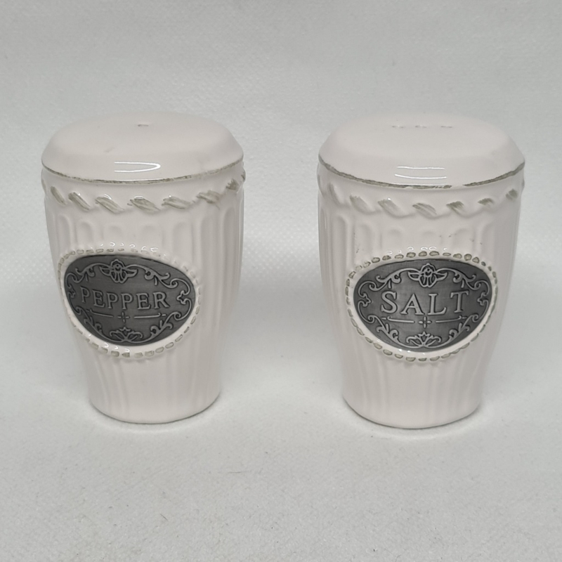 Pfeffer- und Salzset weiß / chromSchöner Pfeffer und Salz aus einer speziellen Sammlung, H8cm.