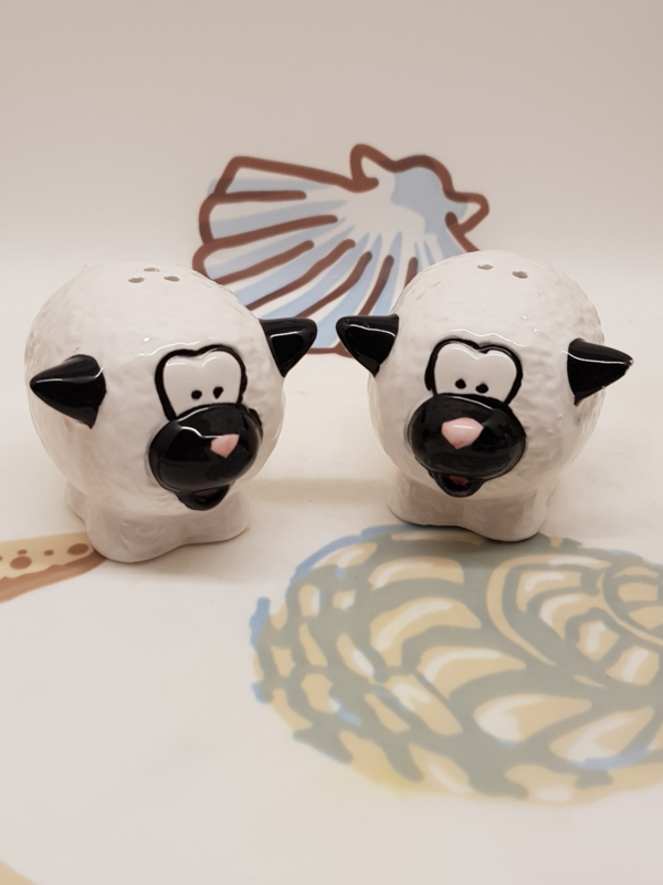 Schafe als Salz- und PfefferstreuerNiedliche Schafe als Salz- und Pfefferstreuer, 5,5 cm hoch.