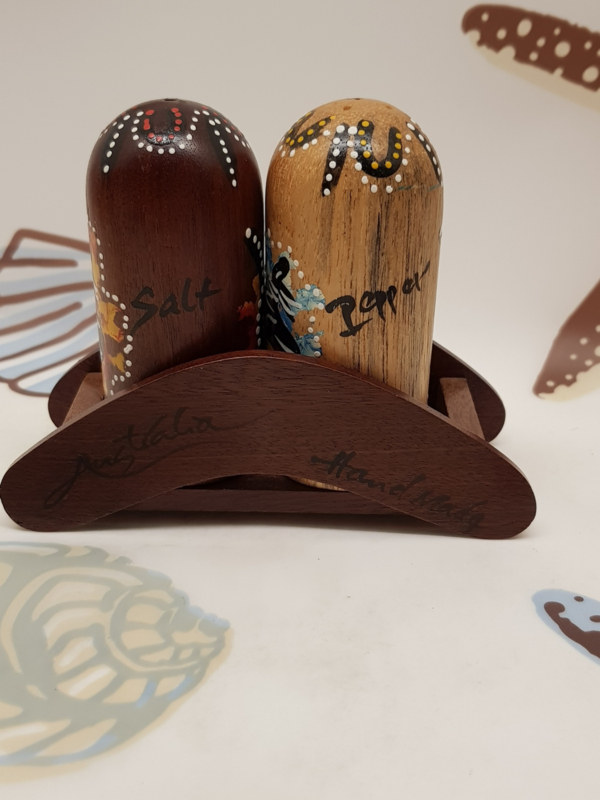 Australische Salz- und PfefferstreuerSchönes Holzsouvenir aus Australien, als Salz- und Pfefferstreuer, 1970er Jahre.