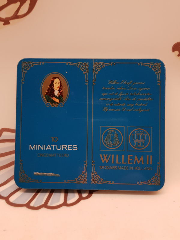 Vintage-Dose mit Willem III.-MotivSchöne alte Zigarrendose von Willem III. 10 Miniaturzigarren 13x11x1,5cm.