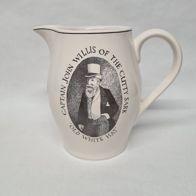 Cutty Sark Old White Hat Kapitän John Willis WasserkrugDieser Whisky-Wasserkrug aus dem Jahr 1972, Kapitän John Willis vom Cutty Sark, H17 cm, Durchmesser 13 cm, ist in sehr gutem Zustand.