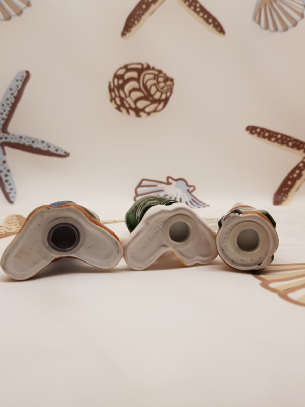 Beautiful vintage 3-piece salt and pepper shakers in the shape of waves, the largest is 10 cm.