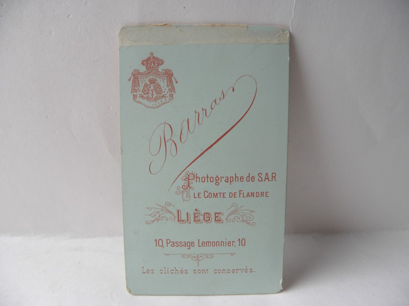 Antique portrait photograph on cardboard with a kind of thickening, by Barras from Liege 1860s-1910s, 10.5x6.3cm.