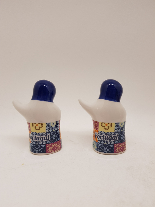 Nice porcelain salt and pepper shakers greeting people from Portugal, 10cm high.